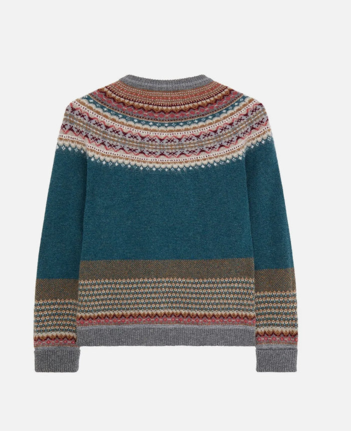 Our customers love the comfort and the luxury of the fine micron, woollen spun Merino yarn, the meticulous attention to detail, unique number of colours and construction of the beautiful Fairisle yoke.