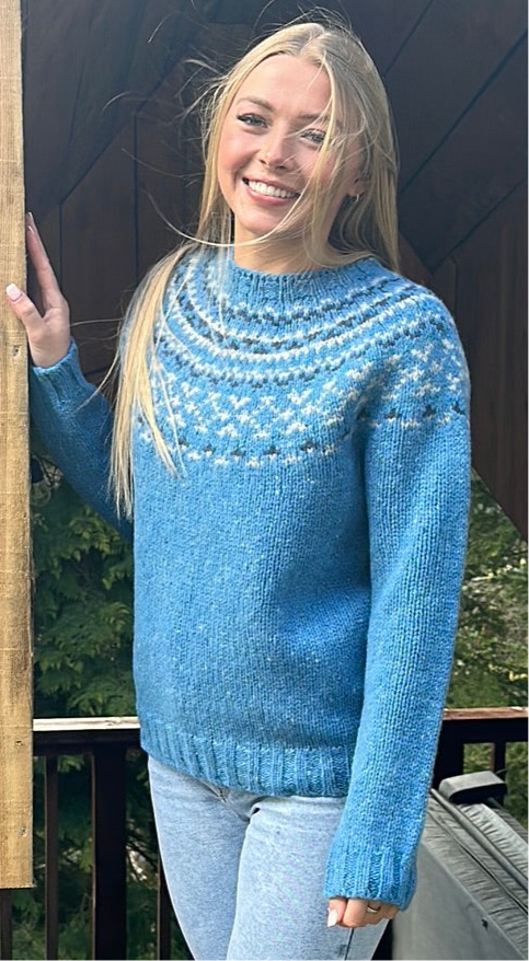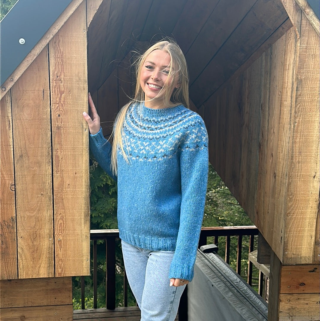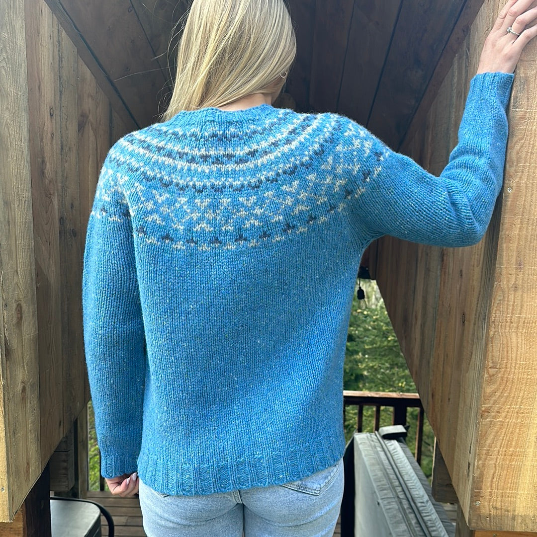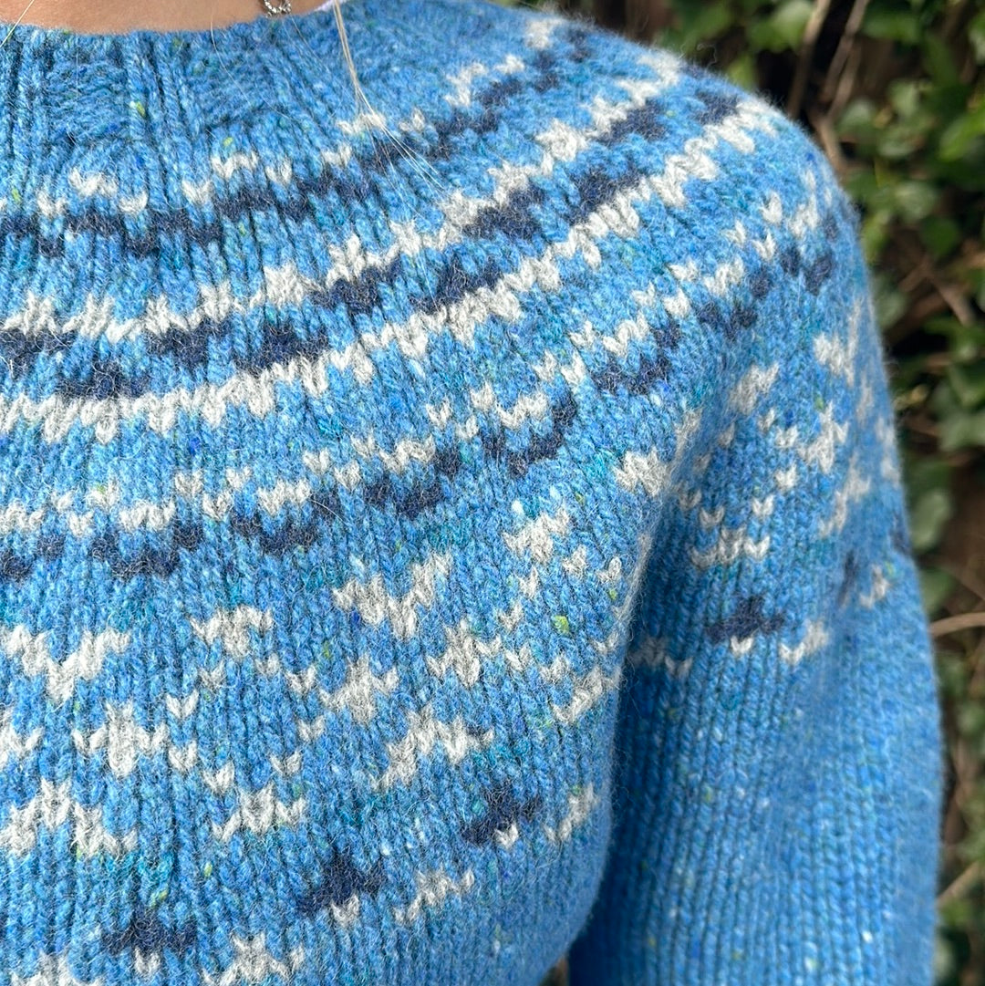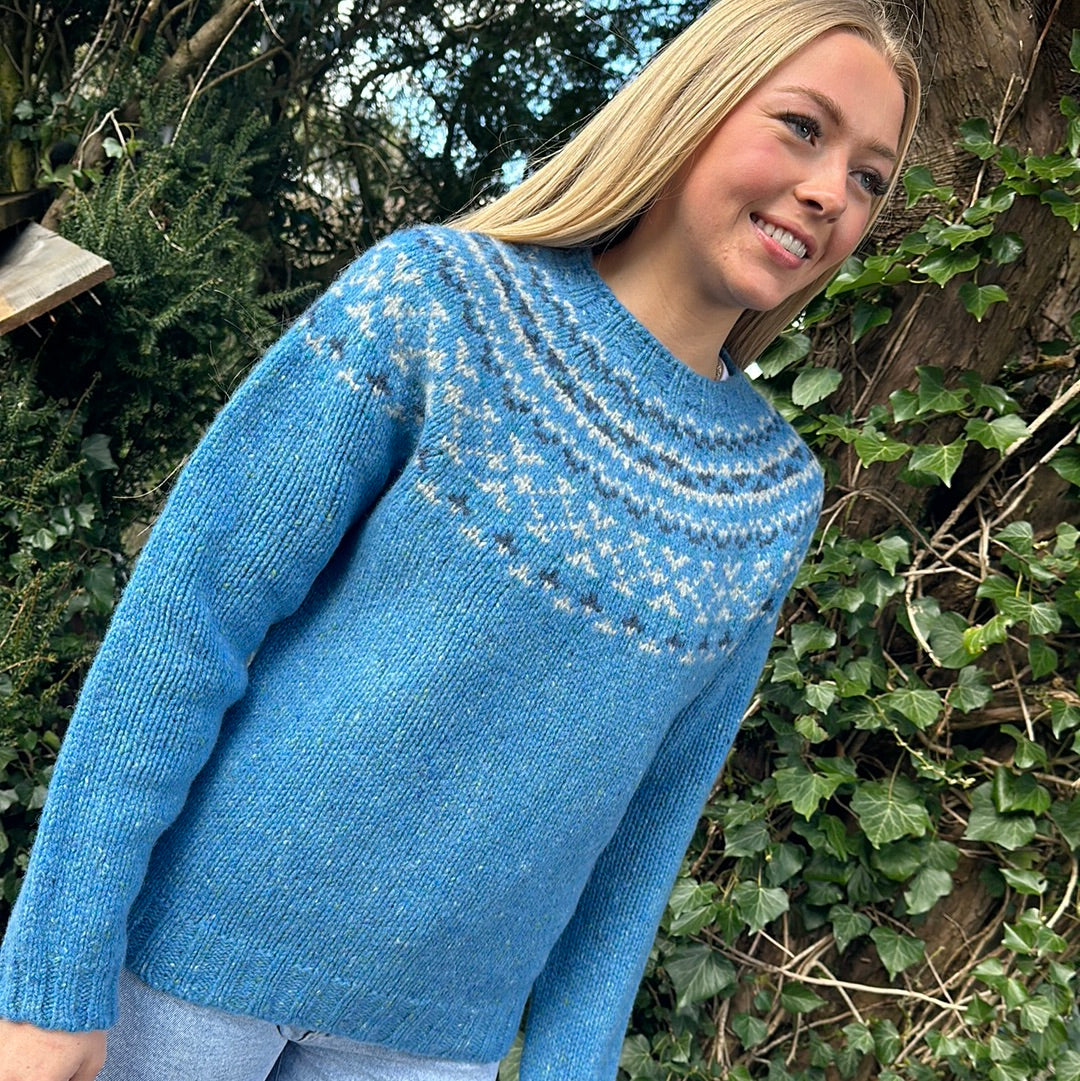 A beautiful yoke sweater with a gorgeous new colourway designed and crafted in Scotland by renowned designers Harley Of Scotland.
