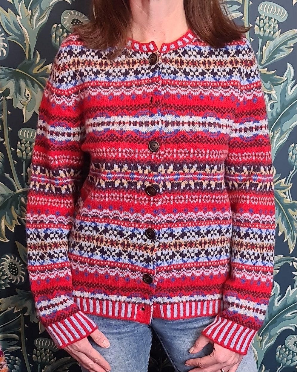 Inspired by classic Shetland and Fair Isle knitwear, the Westray Fair Isle cardigan combines time-honoured knitting techniques with contemporary styling featuring horn buttons.