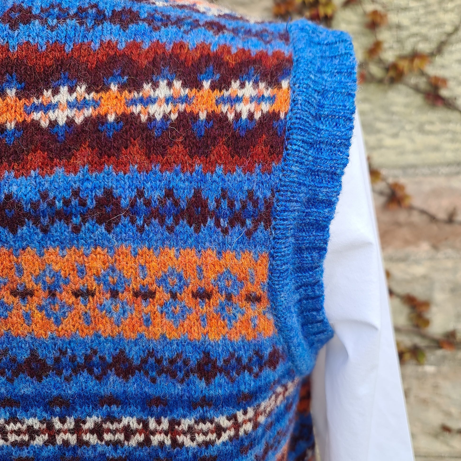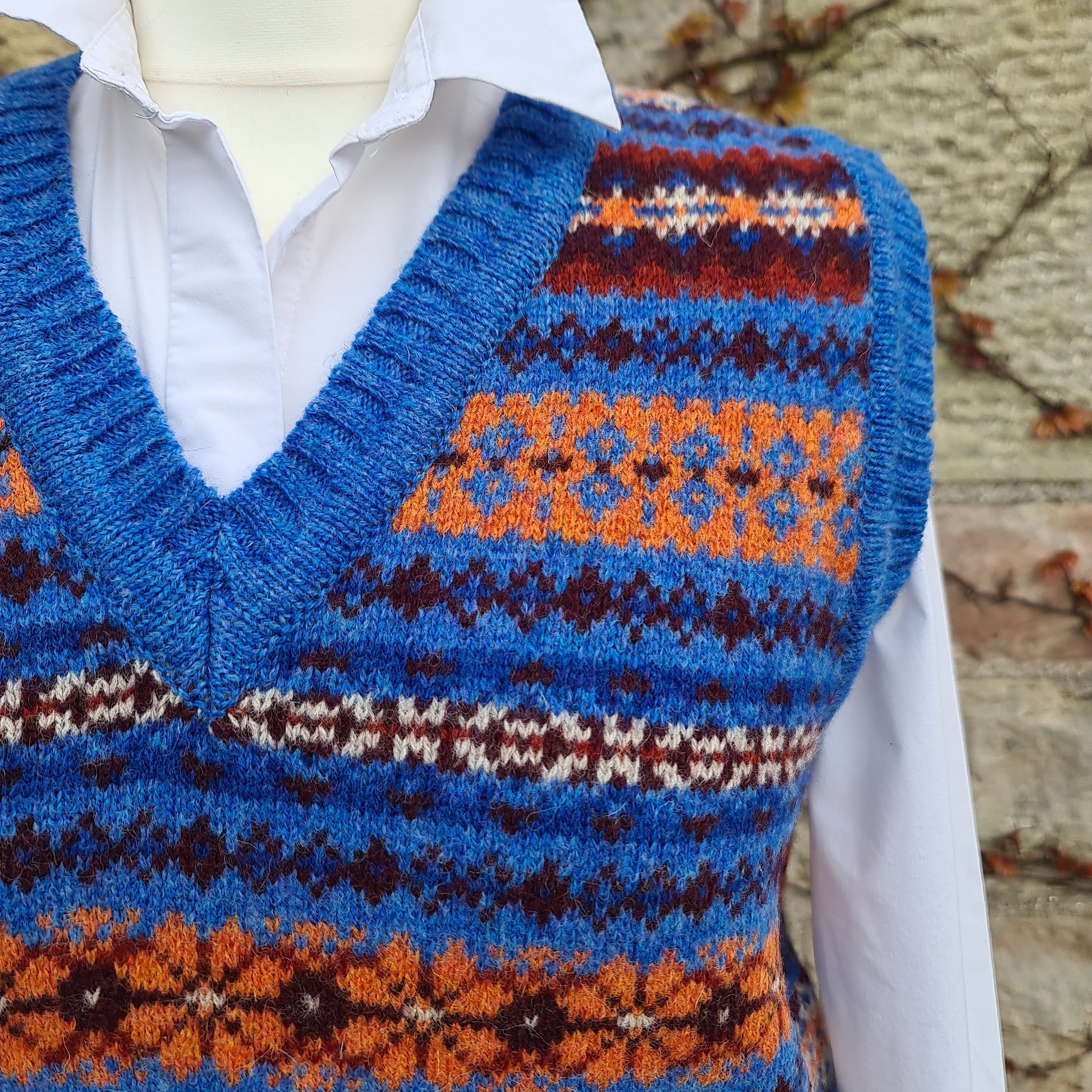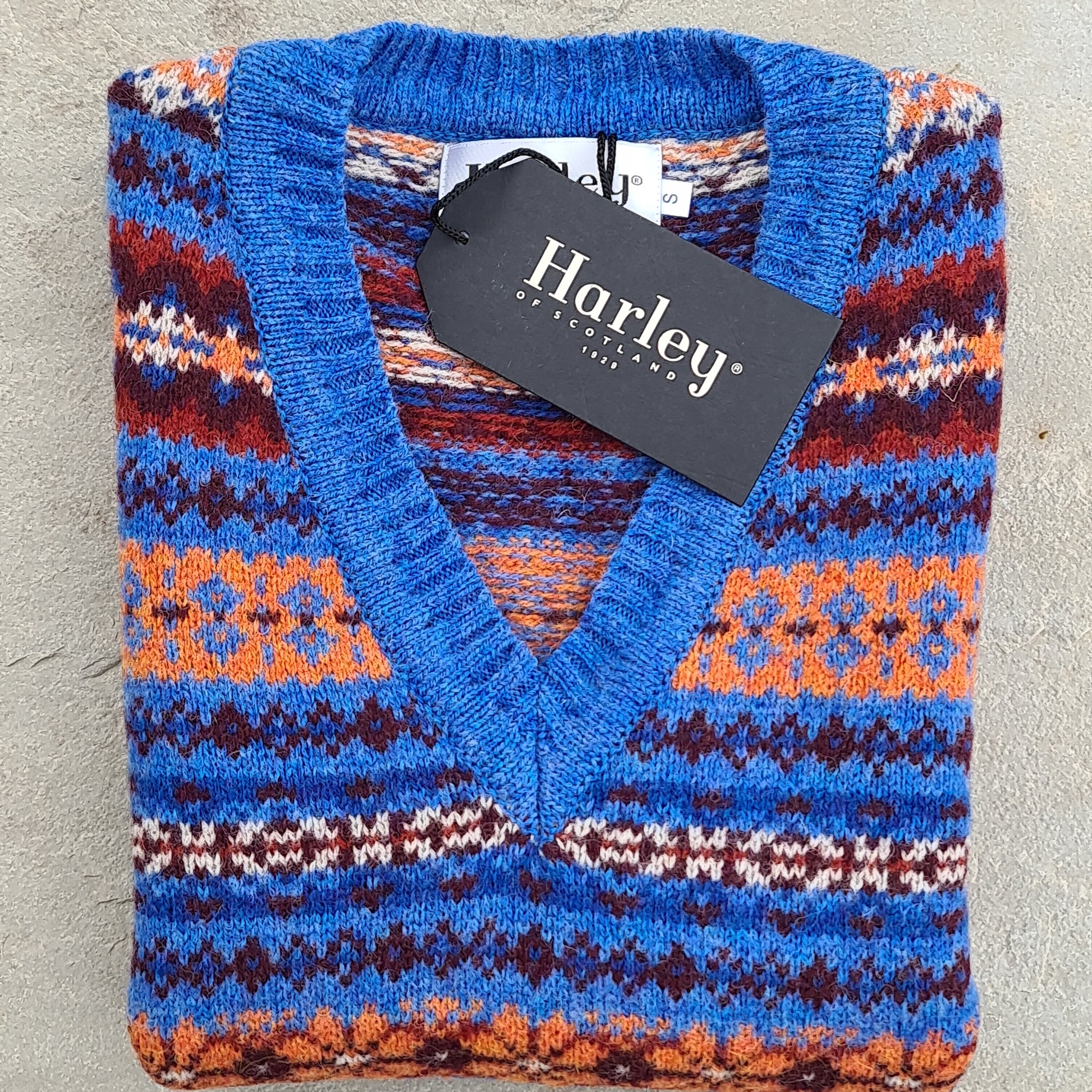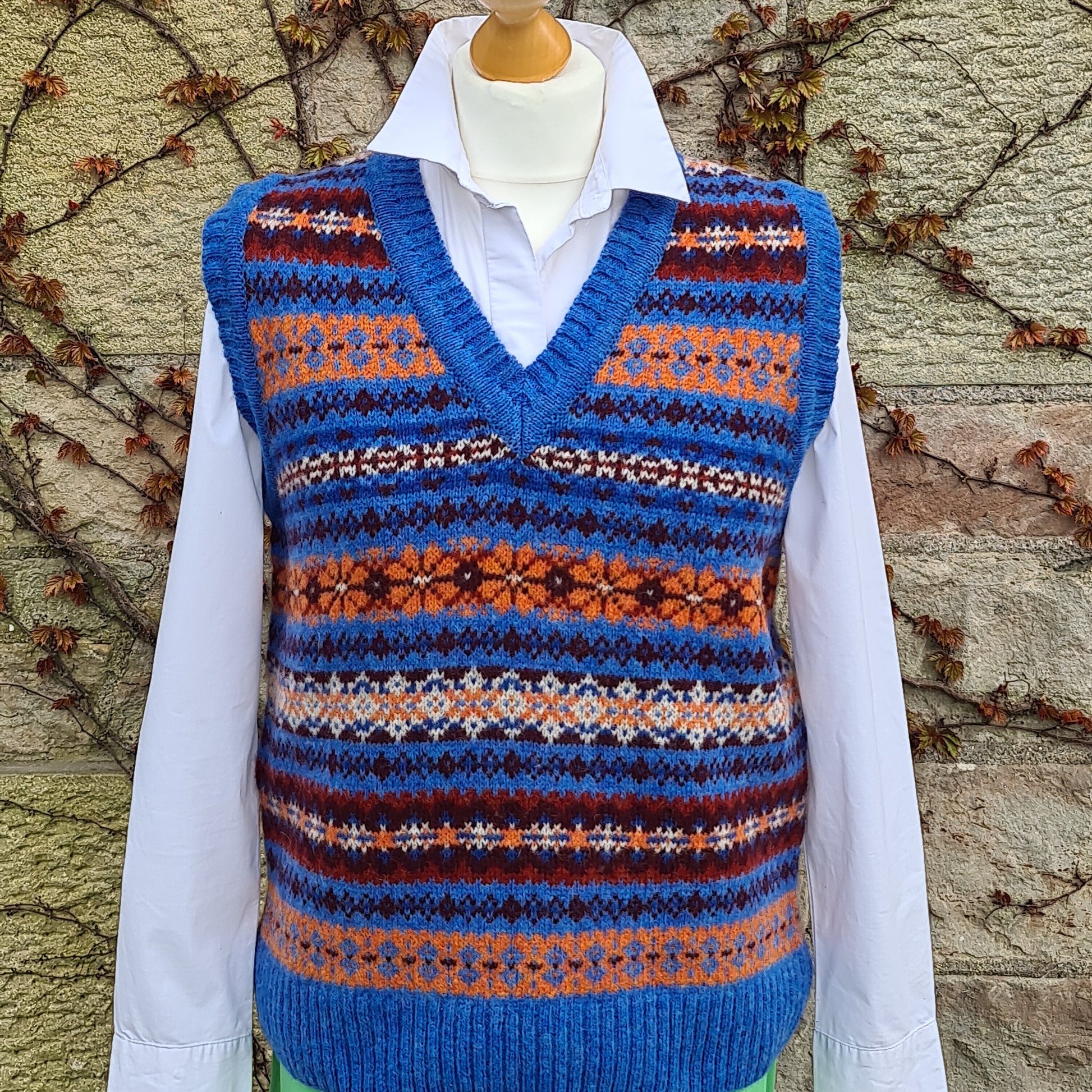 SALE Small only - New Harley Of Scotland All Over Fair Isle Tank Top In Blue Toon
