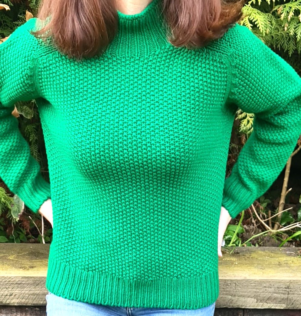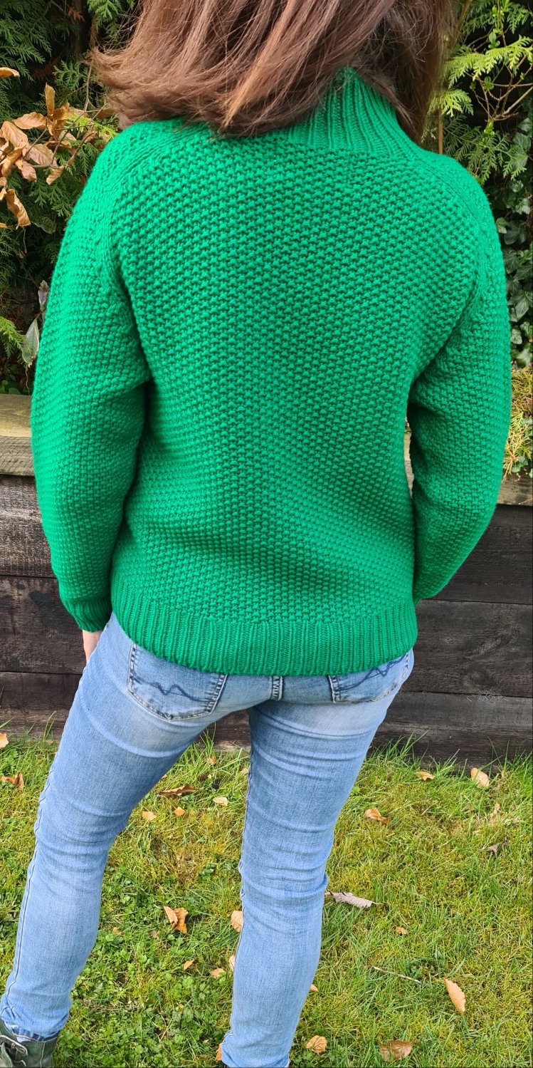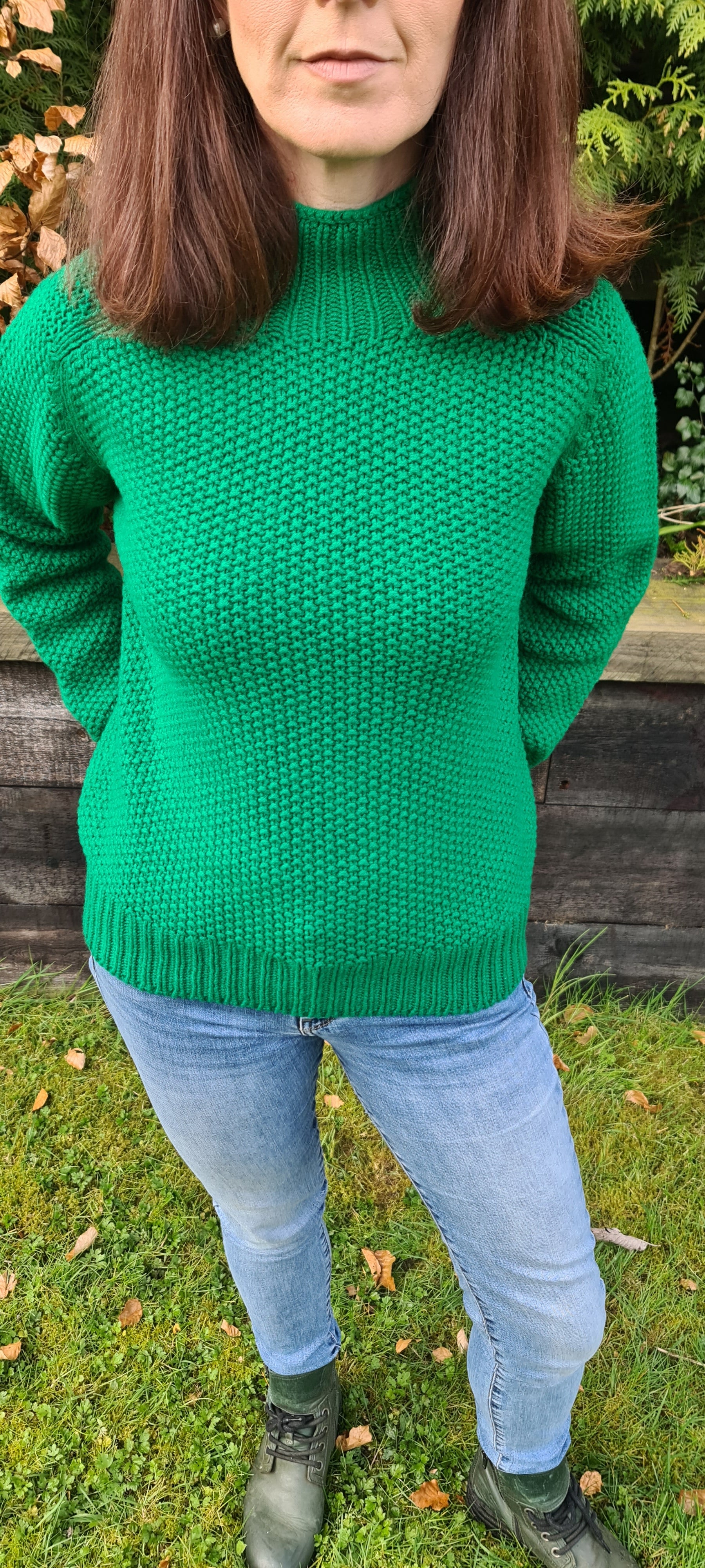 A beautiful, chunky knit, moss stitch sweater in a new colourway from Harley Of Scotland.