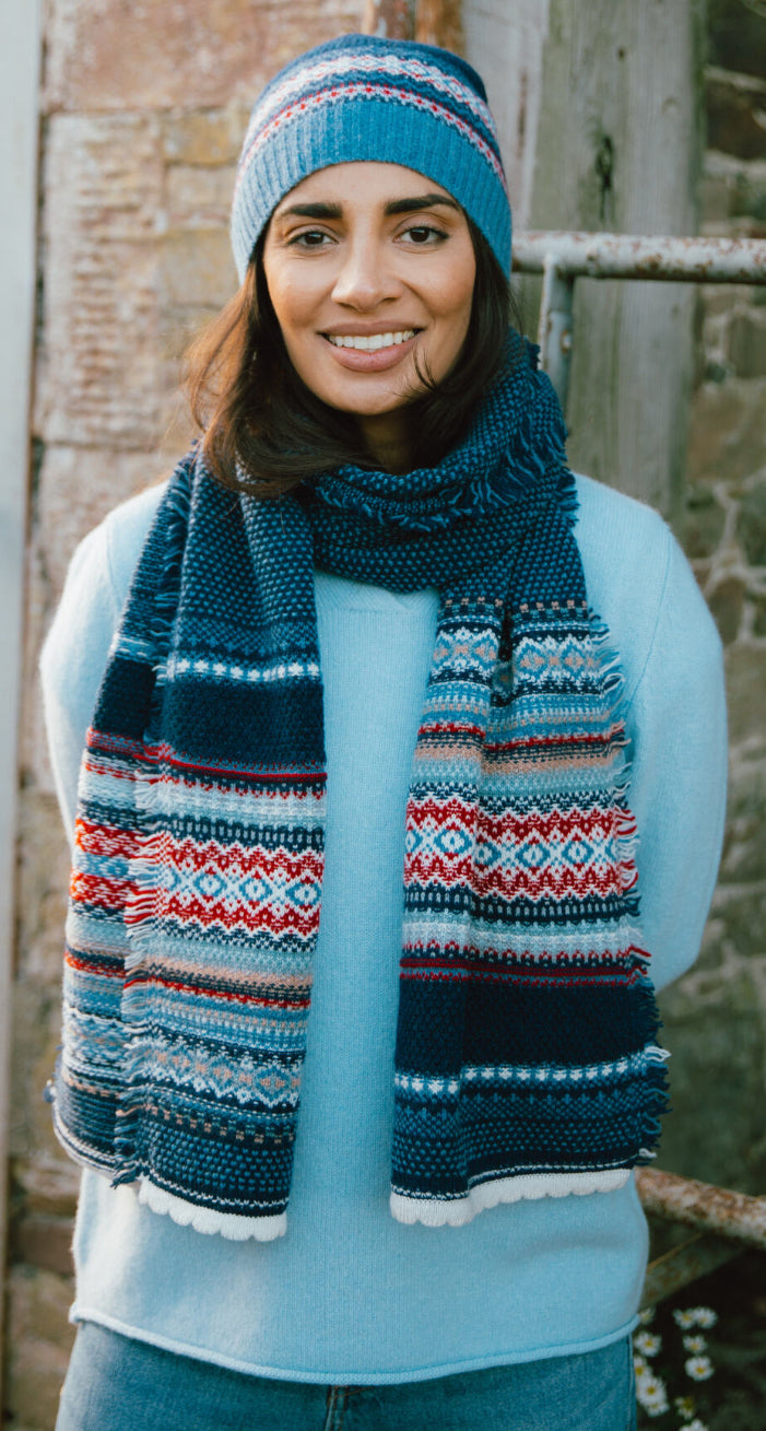 Beautiful Alpine scarf designed in Scotland by talented knitwear designers Eribe who specialise in innovative design-led creations using stunning fairisle designs.