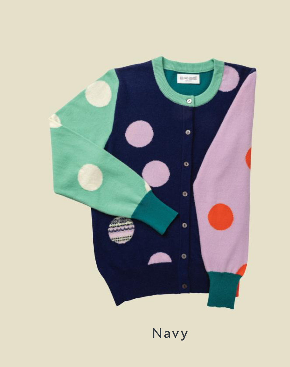 New from Eribe - The ‘Melrose’ Cardigan made from Extrafine Merino wool, features Intarsia circles and vibrant blocks of colour, all details with a signature Eribe design surprise.