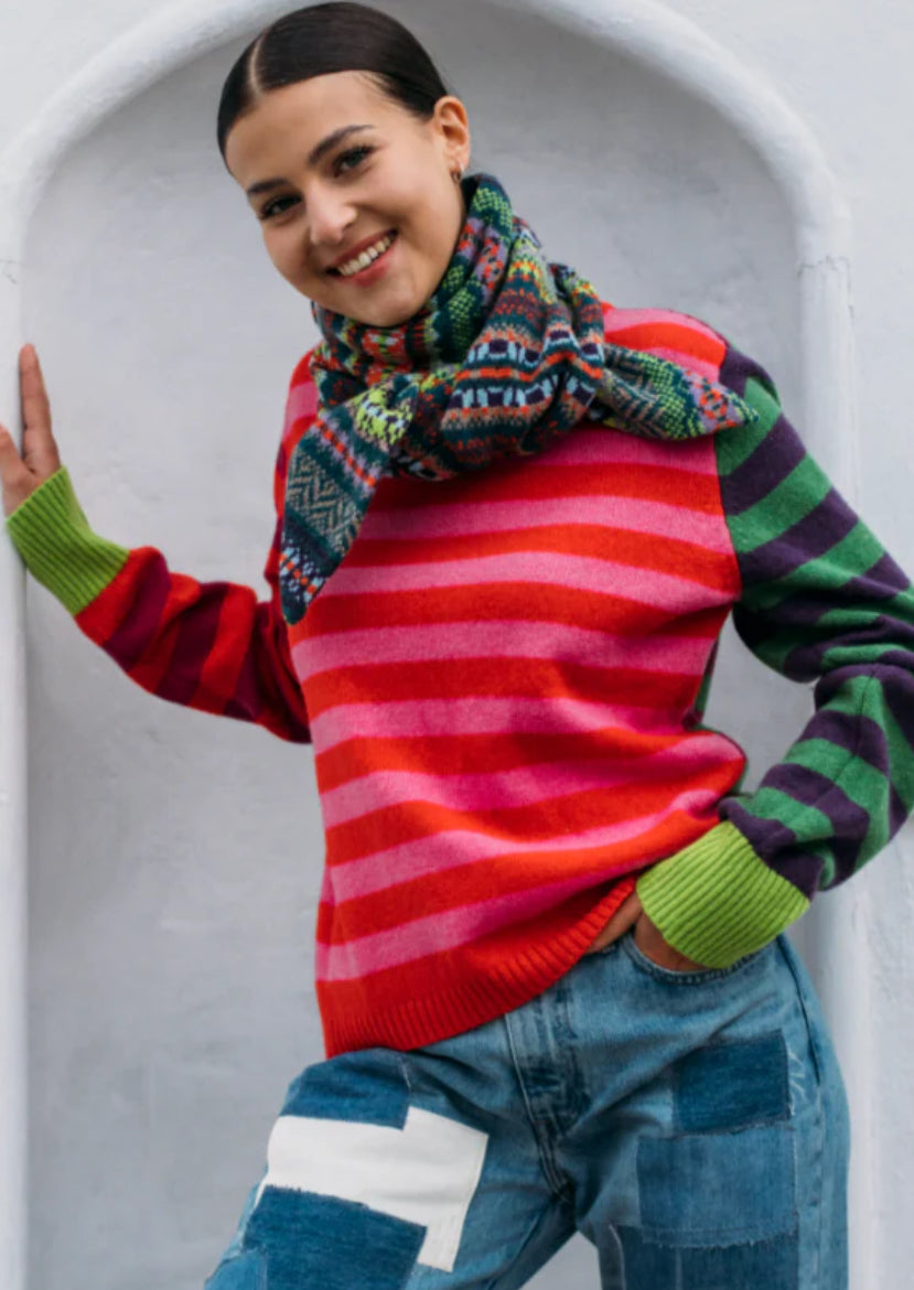 A double sided design with Fairisle on both sides, soft and tactile with a diagonal design point feature.