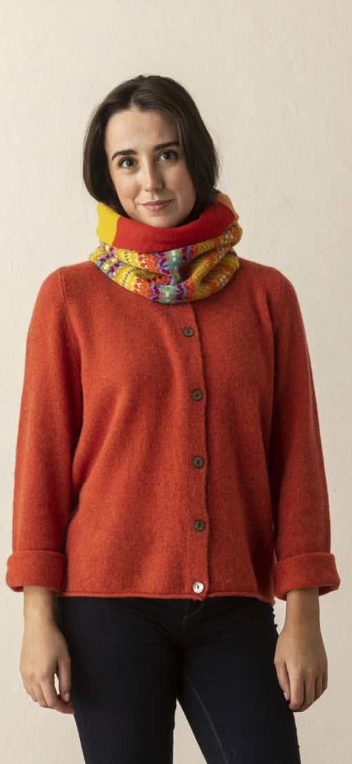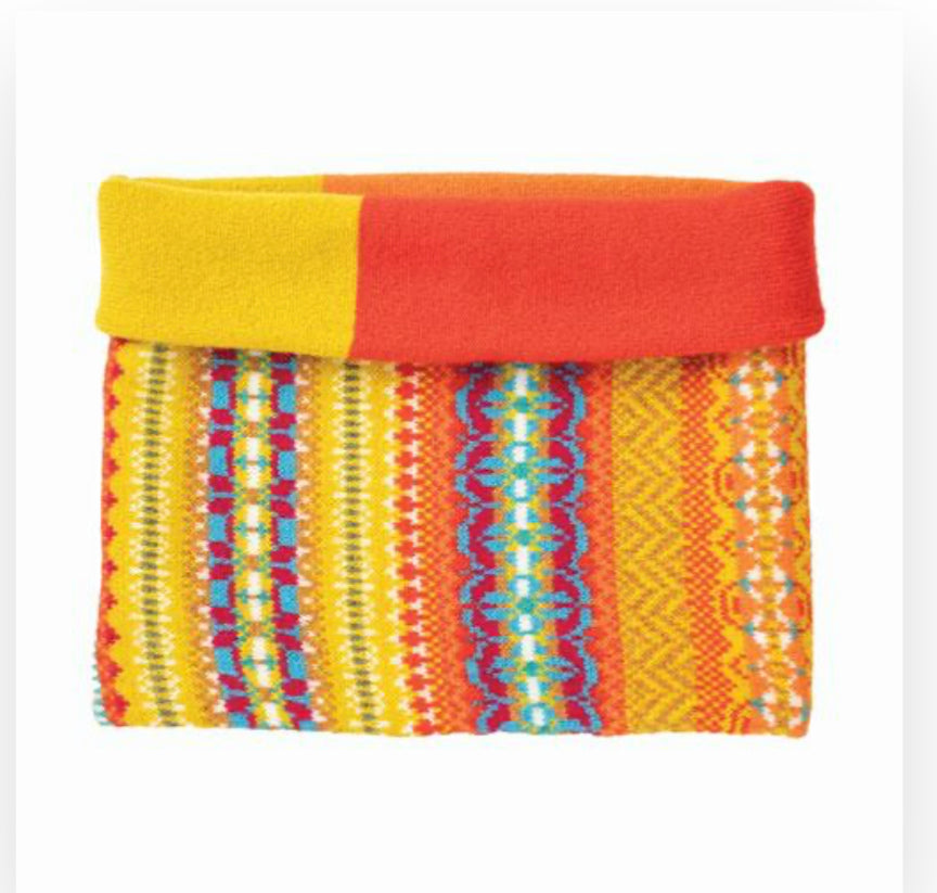 Crafted using super soft 100% Merino Lambswool and designed using a signature Fairisle design on one side and a colour block design on the other making these a reversible accessory.