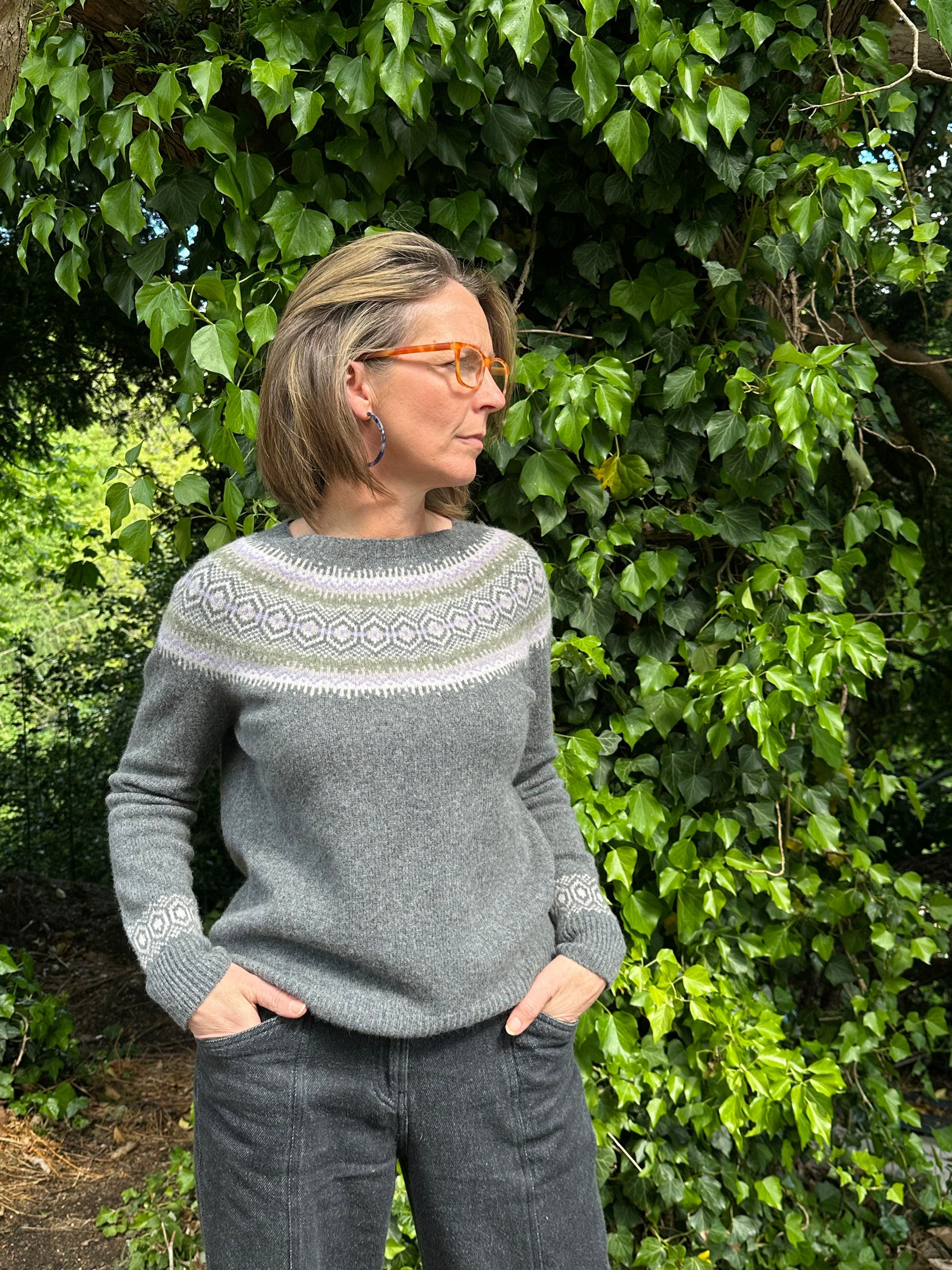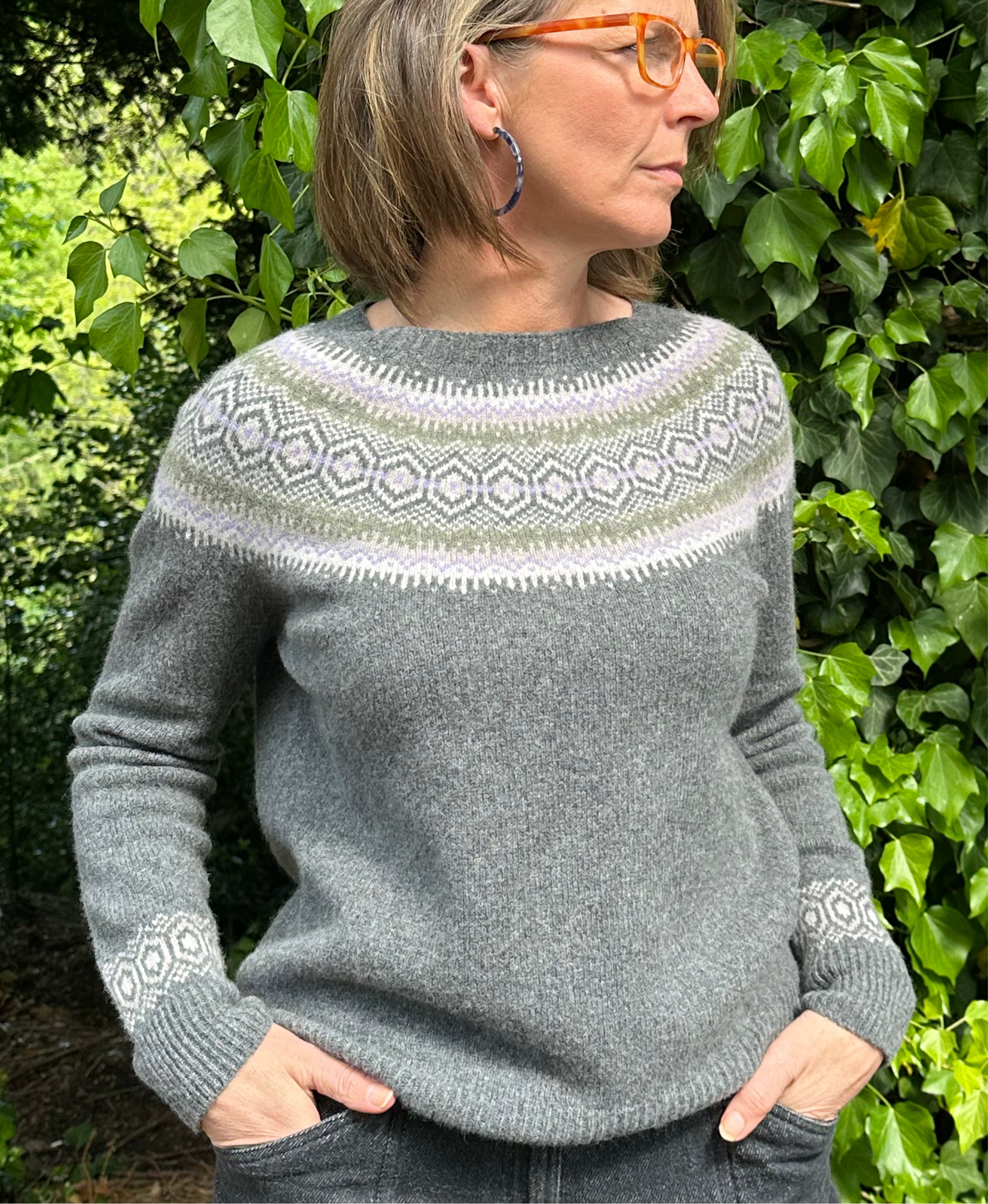Harley of Scotland Ladies Fairisle In Derby Grey