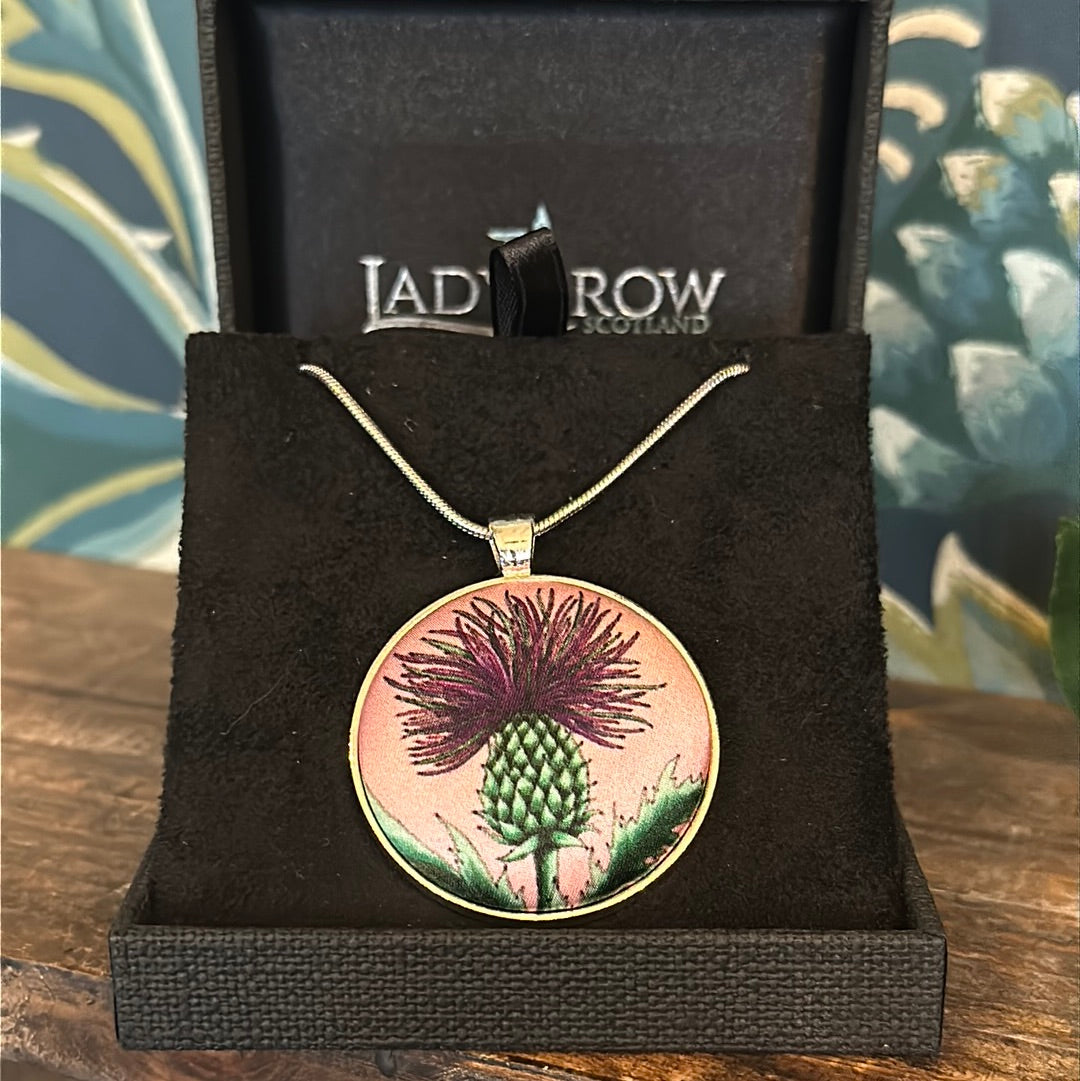 Ladycrow luxurious fine Liberty silk pendants with a beautiful Scottish Thistle design.