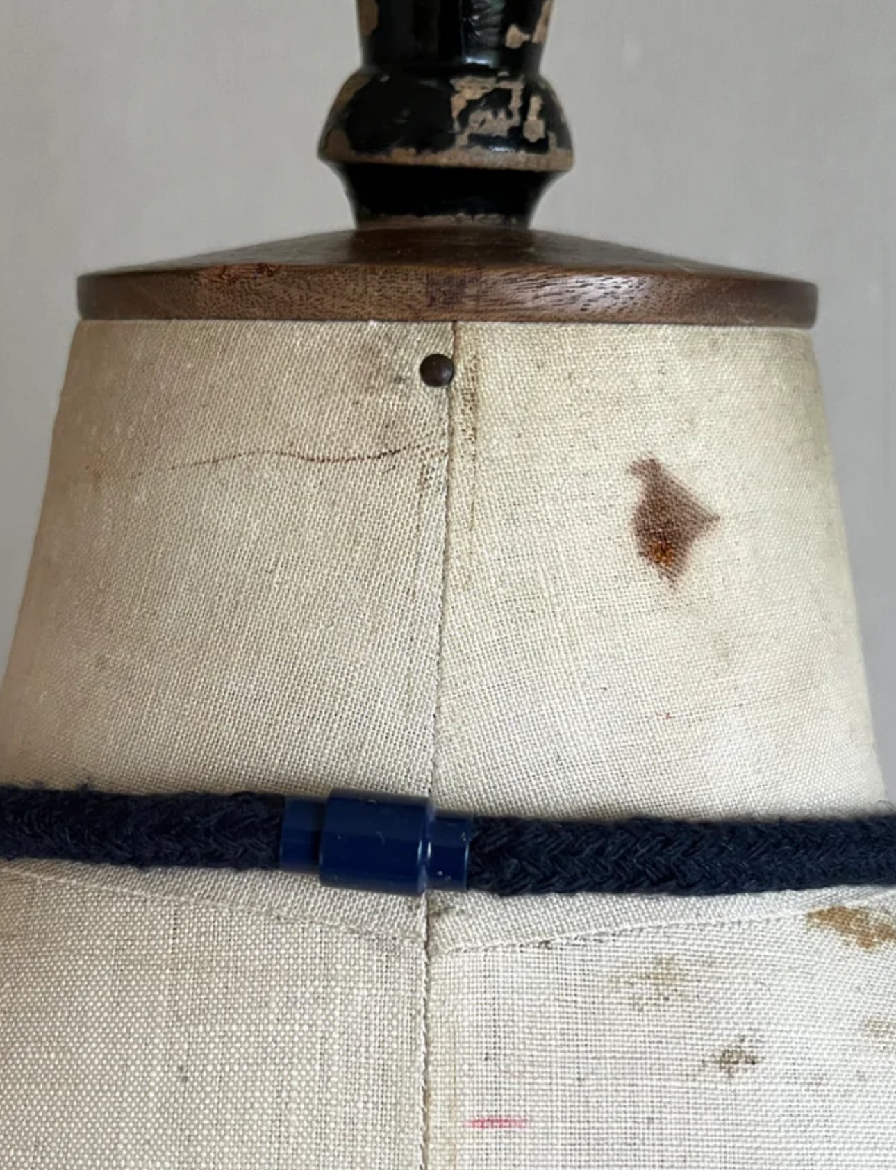 The beads are made from industrial merino wool felt and are strung onto cotton rope and have a magnetic fastener.