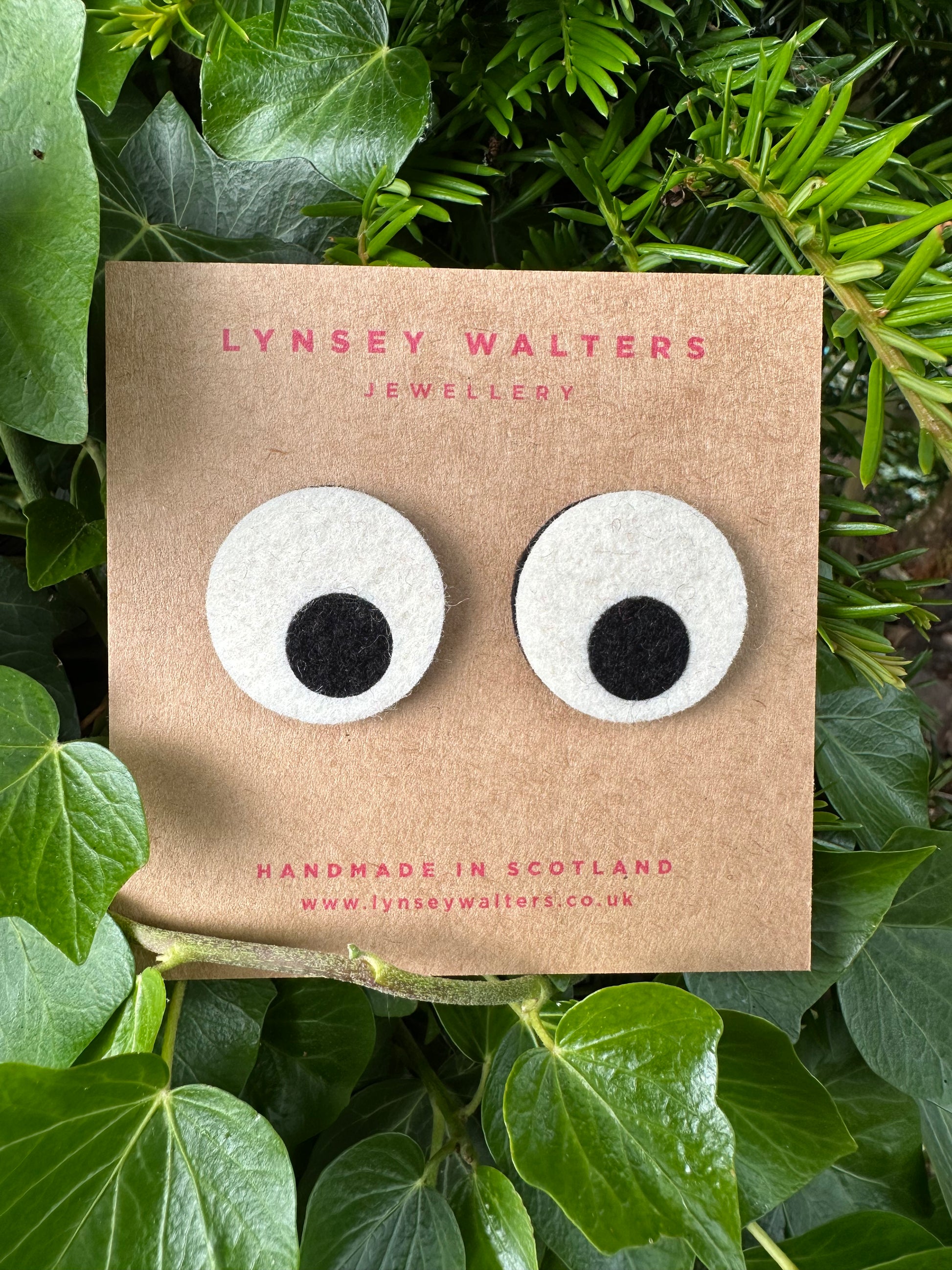 These are a pair of of crafted - felted Googly Eyes that will look fab on your favourite garment.