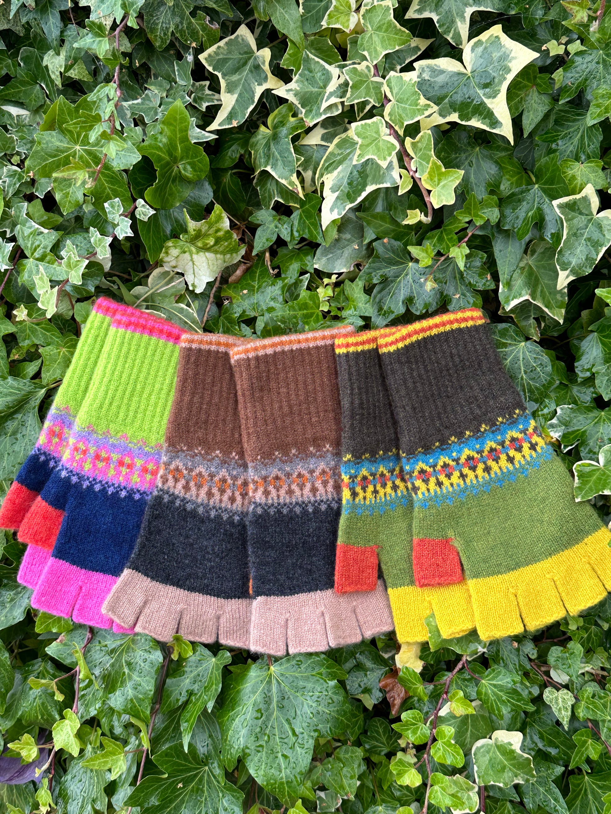 The new colourways for the Alloa Fingerless Gloves add a real pop of colour and style to your outfit this Autumn!