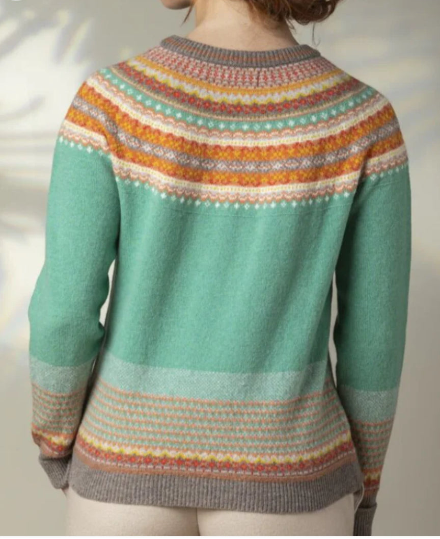 The Alpine is finished with cosy long turn-down cuffs to keep your hands warm, it is perfect for layering with skirts and jeans for a stylish, casual look. A beautiful fairisle garment that will never date!