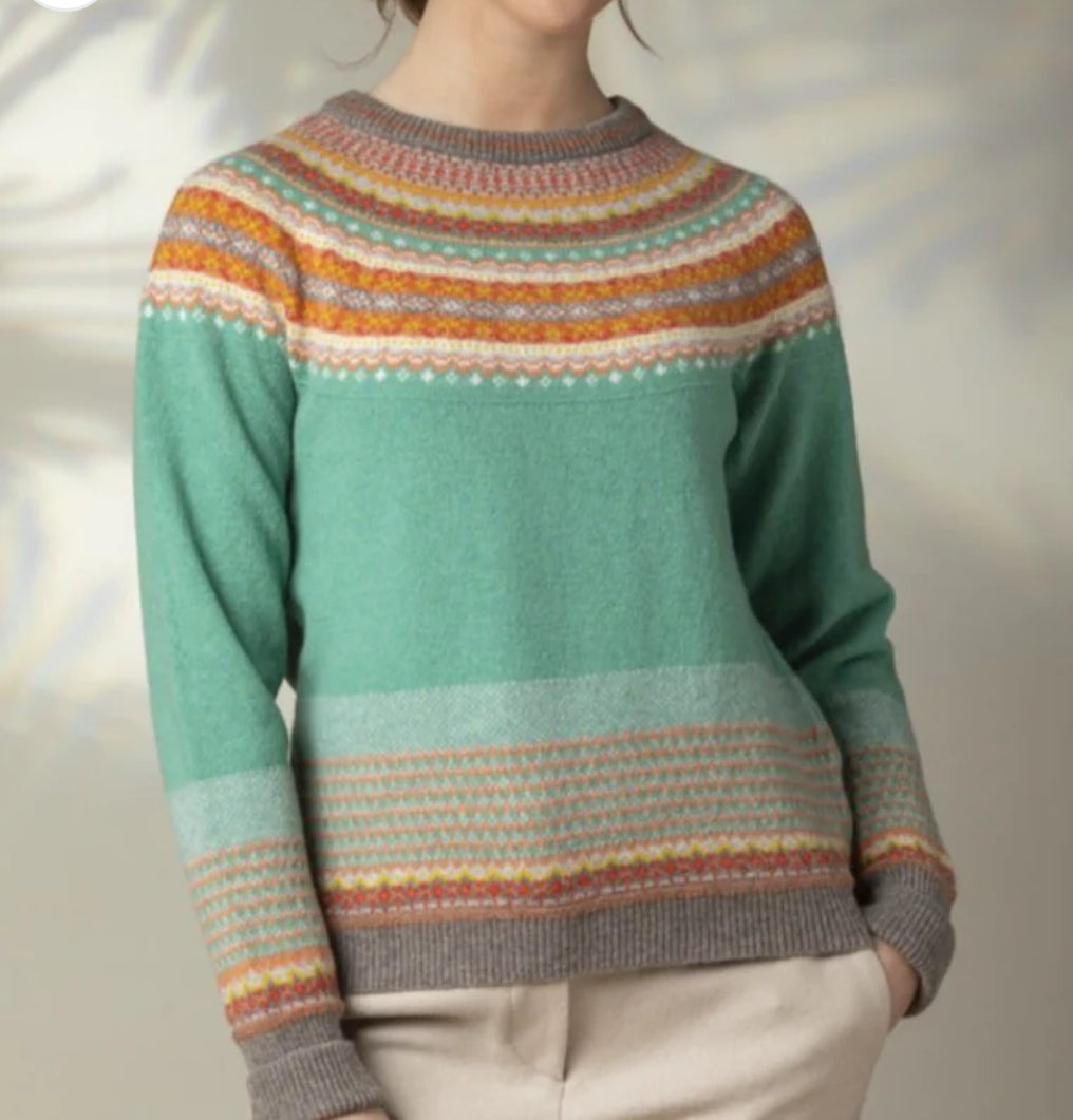 A beautiful fairisle sweater designed in Scotland by talented contemporary designers Eribe. The Alpine sweater offers a stunning fairisle yoke and is knit in merino wool with a slightly shaped waist for a flattering fit and a touch of luxury angora for added soft texture.