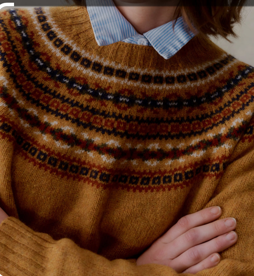 The rich Fairisle yoke is inspired by Scotlands beautiful west coast and features traditional Fairisle patterning.